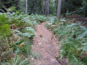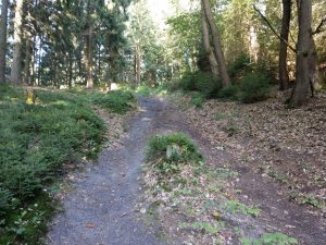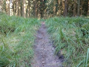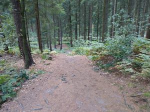Größtmögliche Vermeidung von Straßen. Streckenverlauf über den Dienstlandweg und Am Brooken durch den Wald mit tollem Downhill zum Paul-Roth-Stein-Weg, wo die Hälfte erreicht ist.